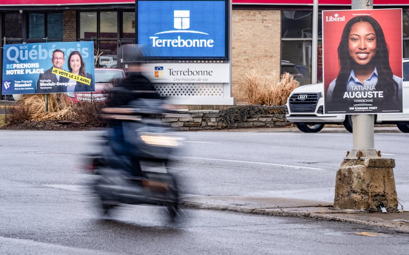 Less than an hour outside downtown Montreal, election signs with the faces of Bloc and Liberal candidates running in Terrebonne are displayed everywhere, including on lawns, storefronts and even lamp posts.