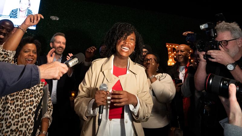 Images from Begum’s election night party show smiling supporters watching the results come in.