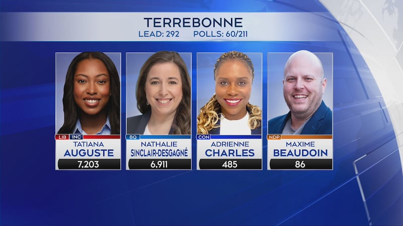 A few minutes after midnight Tuesday, the Liberals had a much wider lead this time around, with Auguste winning a 731-vote lead ahead of Sinclair-Desgagné. Auguste won by just a single vote in the last general election.