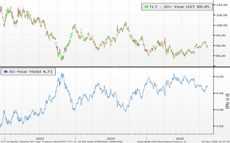 With the United States Congress moving over the weekend, the government looking to open up again and pat themselves on the back before Thanksgiving and the holiday season. U.S. President Trump may be looking to manipulate the Supreme Court on tariffs and voters with a $2,000 piece of tax refund candy. Spending the tariff revenue this way would be bearish for bonds and the “supposed” goal of reducing the mounting debt burden.