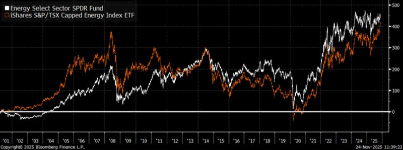 The two original sector ETFs that cover the Canadian (XEG) and U.S. (XLE) energy sectors have generated about a seven per cent annual total return in the past 25 years.
